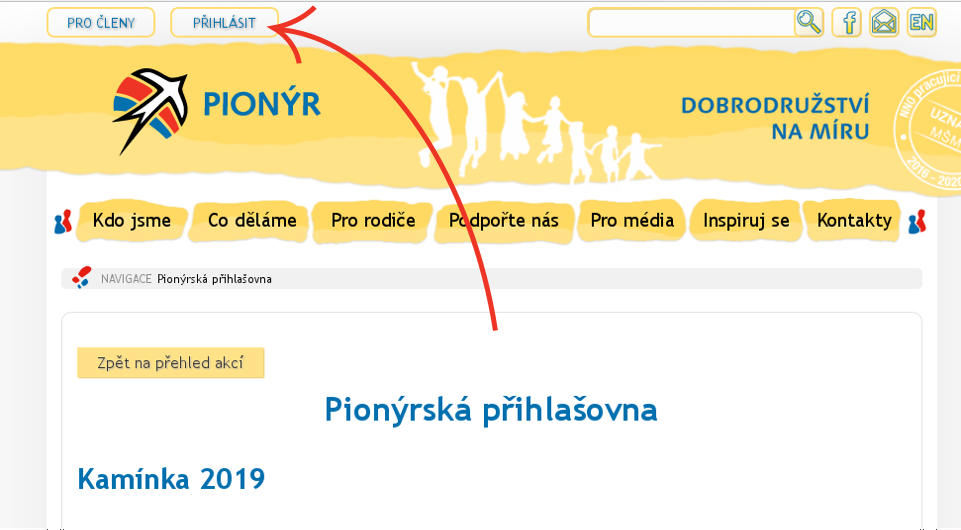 Na Kamínka se každý přihlašuje sám, a to skrze Přihlašovnu, což je speciální webová stránka pro členy Pionýra, určená právě k přihlašování na akce. Níže jsme připravili návod, jak se na Kamínka přihlásit a na nic nezapomenout.